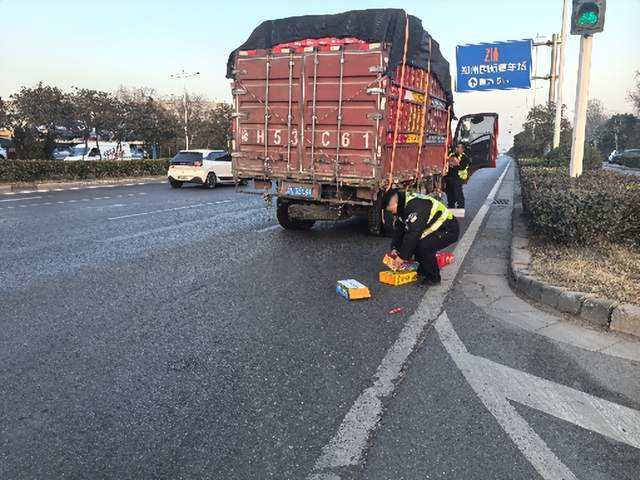 近日,郑州交管十二大队民警在辖区巡逻时,发现一辆货车停靠在路边,车上货物酒落在地。民警立刻驱车上前,一边帮助货车司机将洒落货物搬运上车,一边引导过往车辆安全通行,并耐心提醒车主,上路前一定要检查装载货物是否捆绑牢固,避免行驶途中发生此类意外,影响道路交通安全。货车司机也意识到了自己的错误,点头表示自己会吸取这次教训,绝不再犯。(康三鹏)