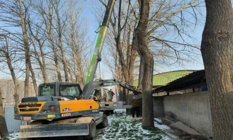 图11 挖掘机、吊车进场作业,对倒伏树木进行清理