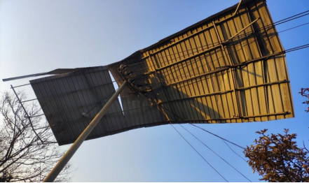 图18 附近彩钢瓦片被吹至电线杆上方