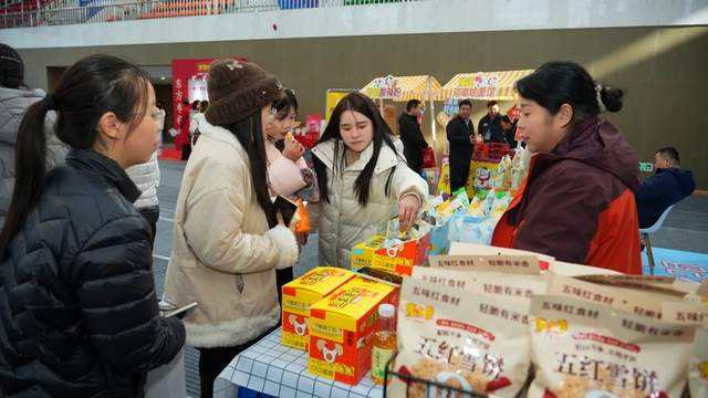 踊跃参与的大学生群体成为现场一道亮丽的风景线,他们一波接一波地涌入展区,并且展现出强大的消费活力与对新潮产品的浓厚兴趣。多家企业的休闲食品、创新饮品备受年轻学子青睐。漯河的宏图食品、新乡的禾暮食品、焦作的思圆方便面、濮阳的燃喵咖啡成为人气超旺的展位,现场试吃、购买者形成排队局面。其中新乡的禾暮食品、漯河宏图食品展位出现货到就销售一空的状况,现场能看见工作人员不断在拉小推车补货。