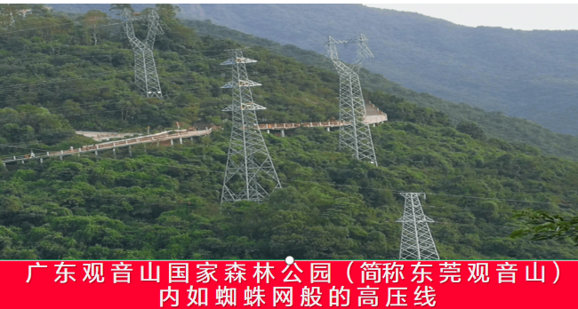 在观音山国家森林公园内,共有七组高压线路,二十余座高压线塔穿行架设,它们分别是220千伏东莆甲乙线、110千伏古塘线、110千伏古清线、110千伏古裕线、110千伏古樟乙线、110千伏鹿窝输变电配套线路以及220千伏东莞—角布双回送电线路工程。这些线路的建设时间跨度从2002年至2012年,在这之中,仅有一条是在公园承包前已建成,另一条有相关审批手续,而其余五条均没有经过省、国家相关部门的批准,属于违法工程。