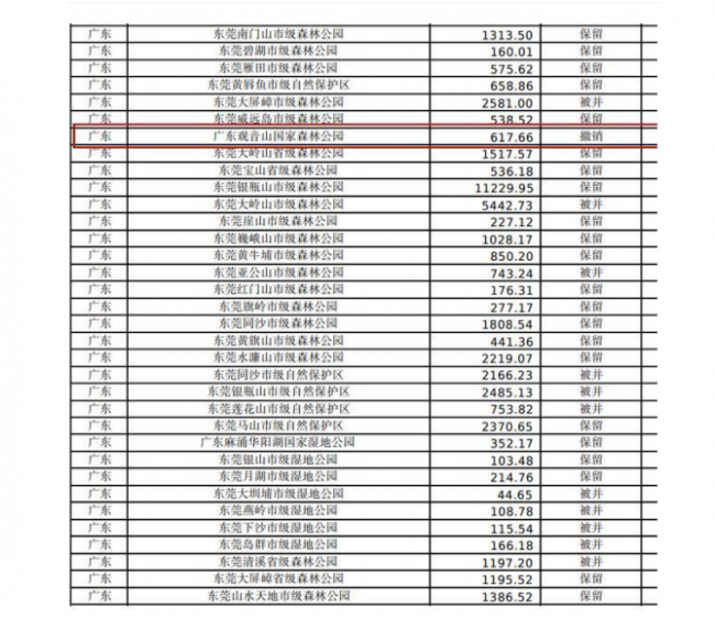 上图为国家林业和草原局、自然资源部公示拟不再保留自然保护地名单