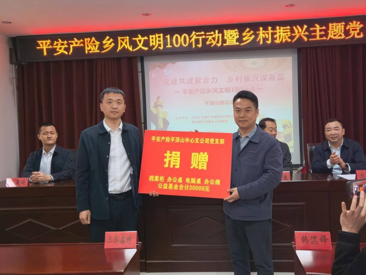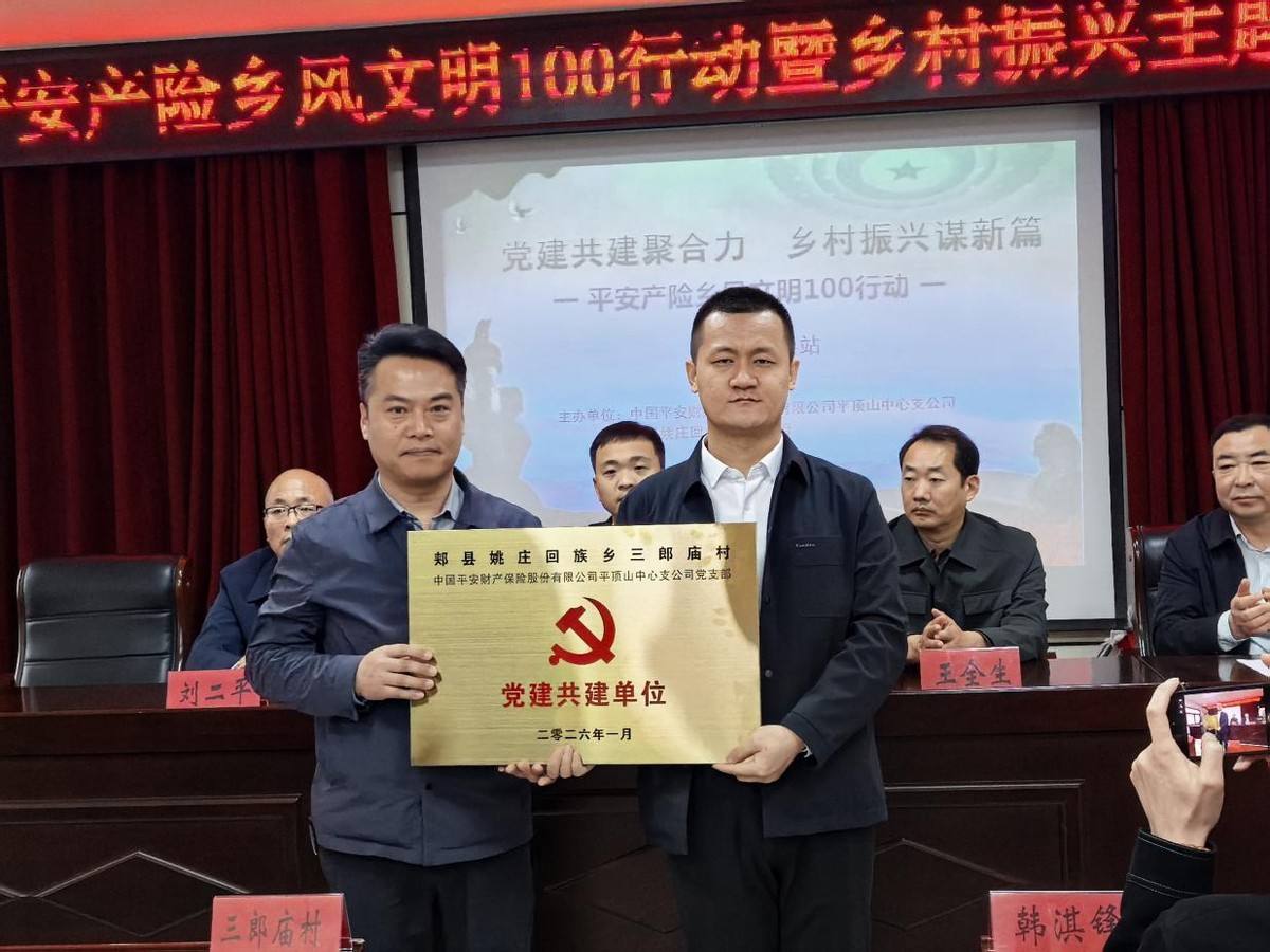 此次活动,平安产险平顶山中心支公司为郏县姚庄回族乡三郎庙村捐赠资金3万元,用于党群服务中心建设及公共设施升级,举行党建共建单位及三农服务站揭牌仪式,借力“保险+”服务功能,打造党建基地和致富基地,全面推进乡村振兴工作。