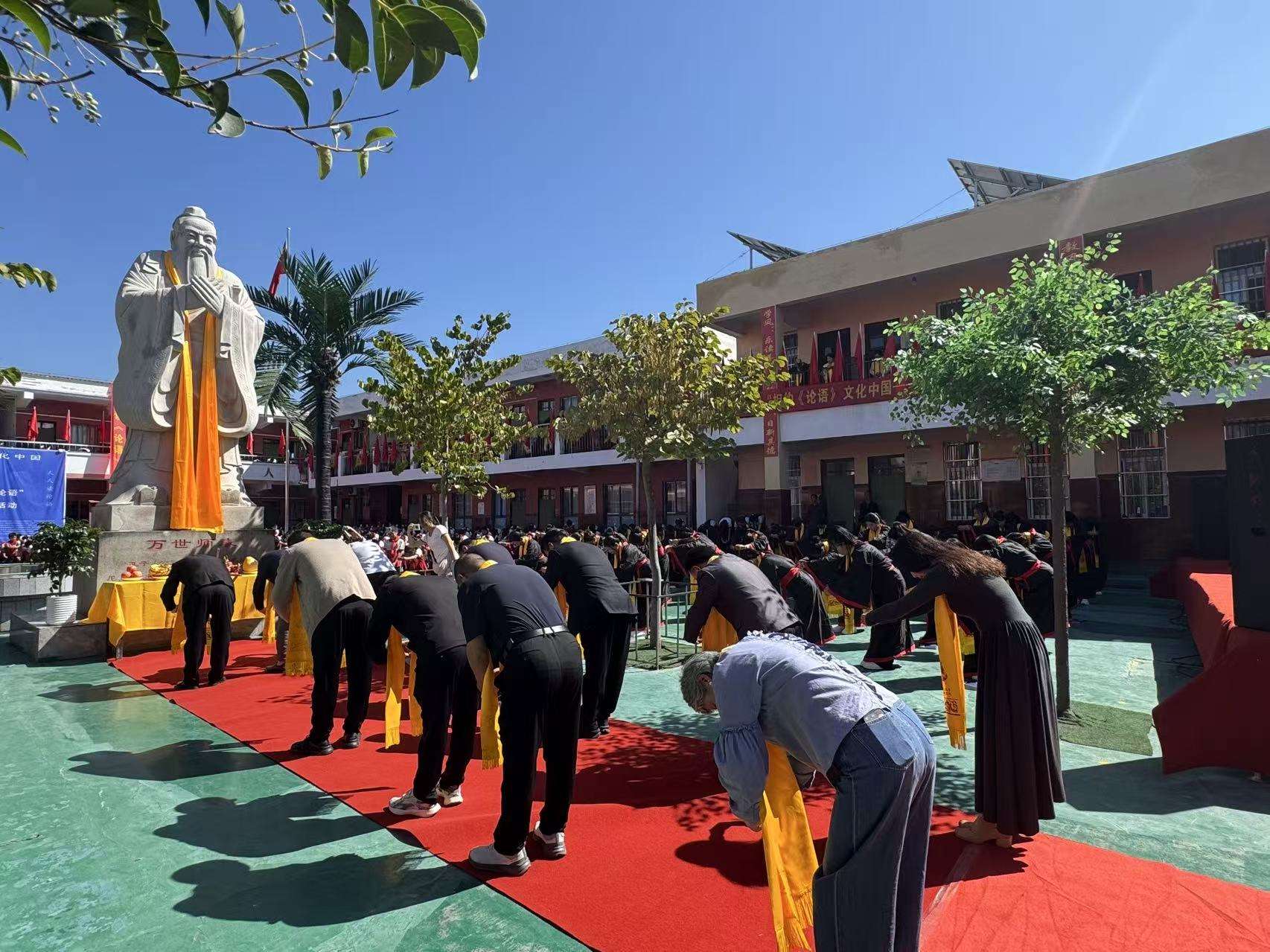 祭孔仪式将活动推向高潮。在肃穆的乐曲中,全体 人员肃立鞠躬,以传统礼仪表达对先师孔子的崇高敬意。《礼运大同》歌声悠扬响起,“大道之行也,天下为公”的旋律穿越千年,在校园上空久久回荡。庄重的仪式让参与者深刻感受到中华礼仪文化的魅力,增强了文化认同与自信。