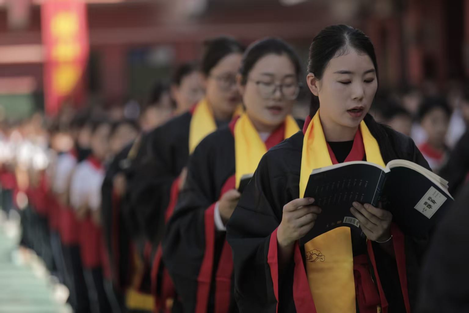 在领读嘉宾的带领下,来自各地的嘉宾、师生及线上参与者齐声诵读《论语》“学而第一”“子路第十三”“宪问第十四”“尧曰第二十”(节选)。“学而时习之,不亦说乎?”“君子成人之美,不成人之恶”等经典名句。