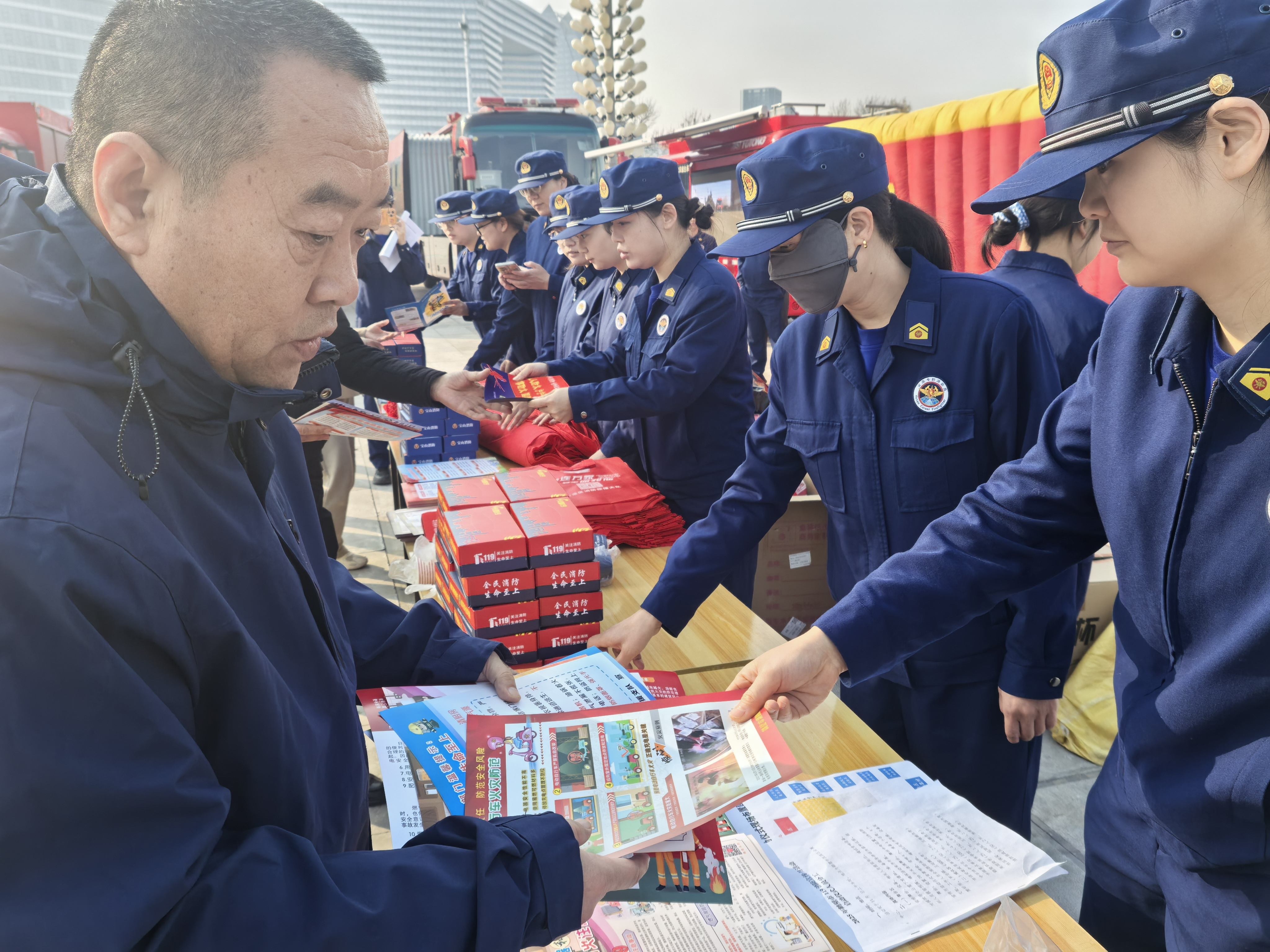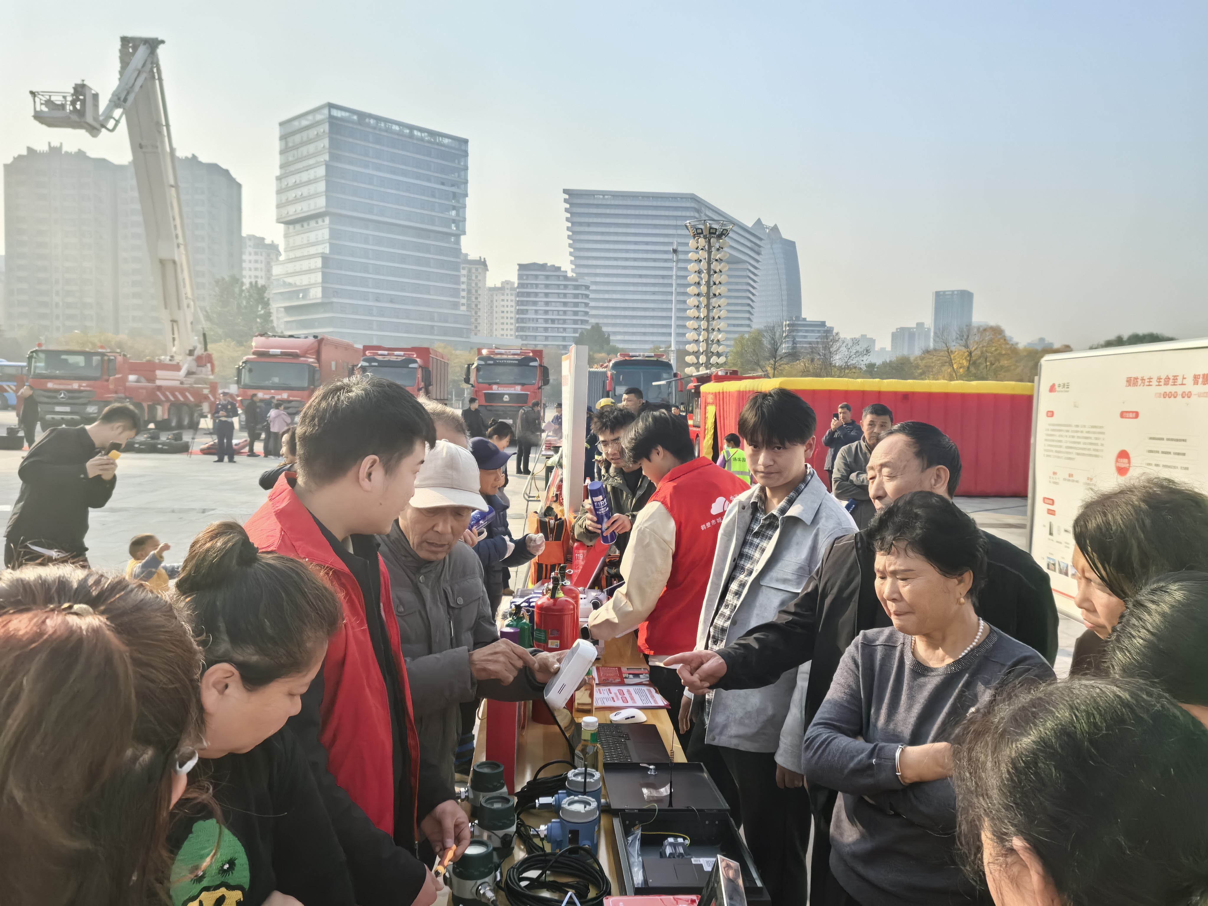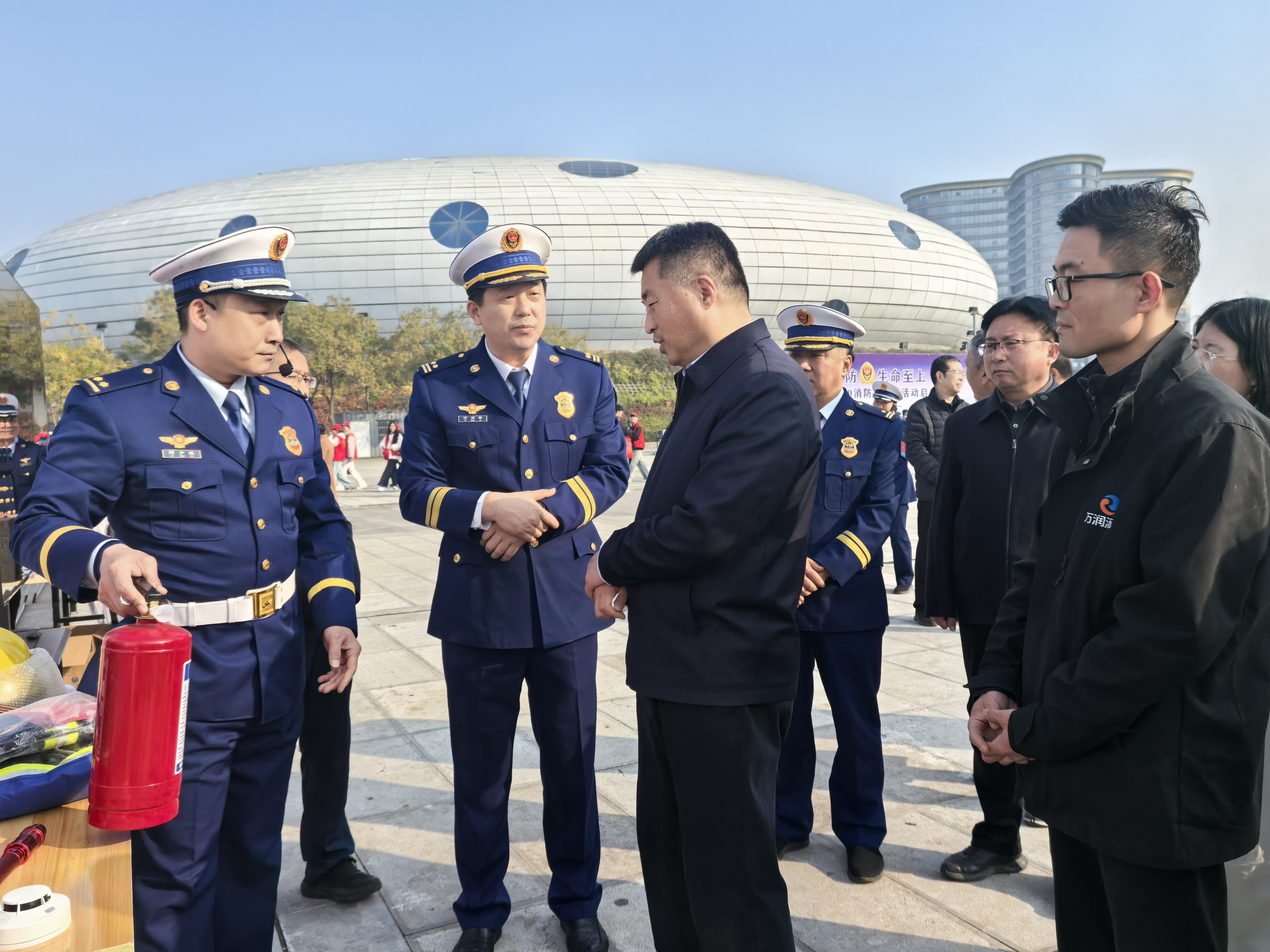 仪式结束后,与会人员还参观了火灾防范、智慧消防、泥塑消防、油锅起火实验、火场逃生体验、消防车辆器材装备等展区,现场观摩了搜救犬搜救、纵深灭火救援操法等表演。