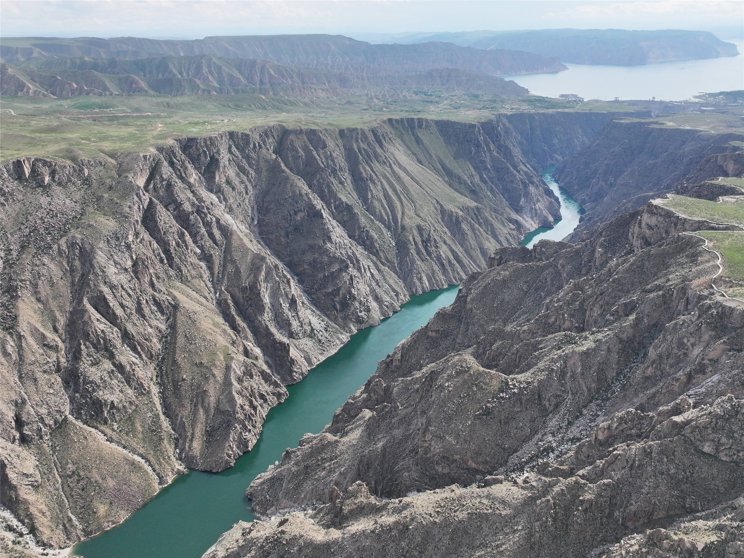 6月16日,青海省共和县境内的黄河龙羊峡晴空万里,黄河如一条苍翠的巨龙从峡谷间穿过。龙羊峡是黄河进入黄河峡谷区的第一个峡谷。