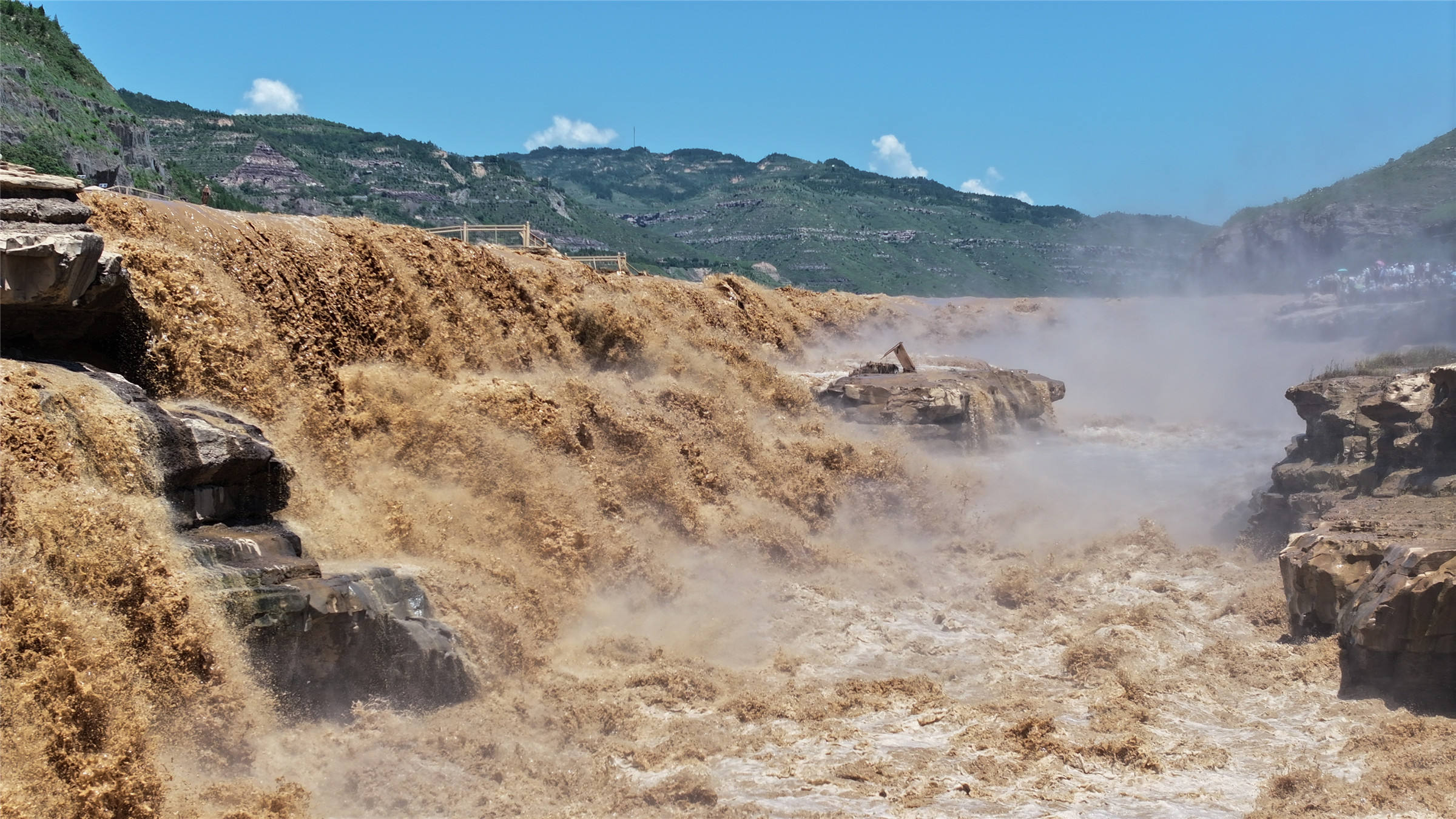8月14日,陕西省宜川县、山西省吉县之间的壶口瀑布水流奔腾不息,尽显黄河的磅礴与壮美。