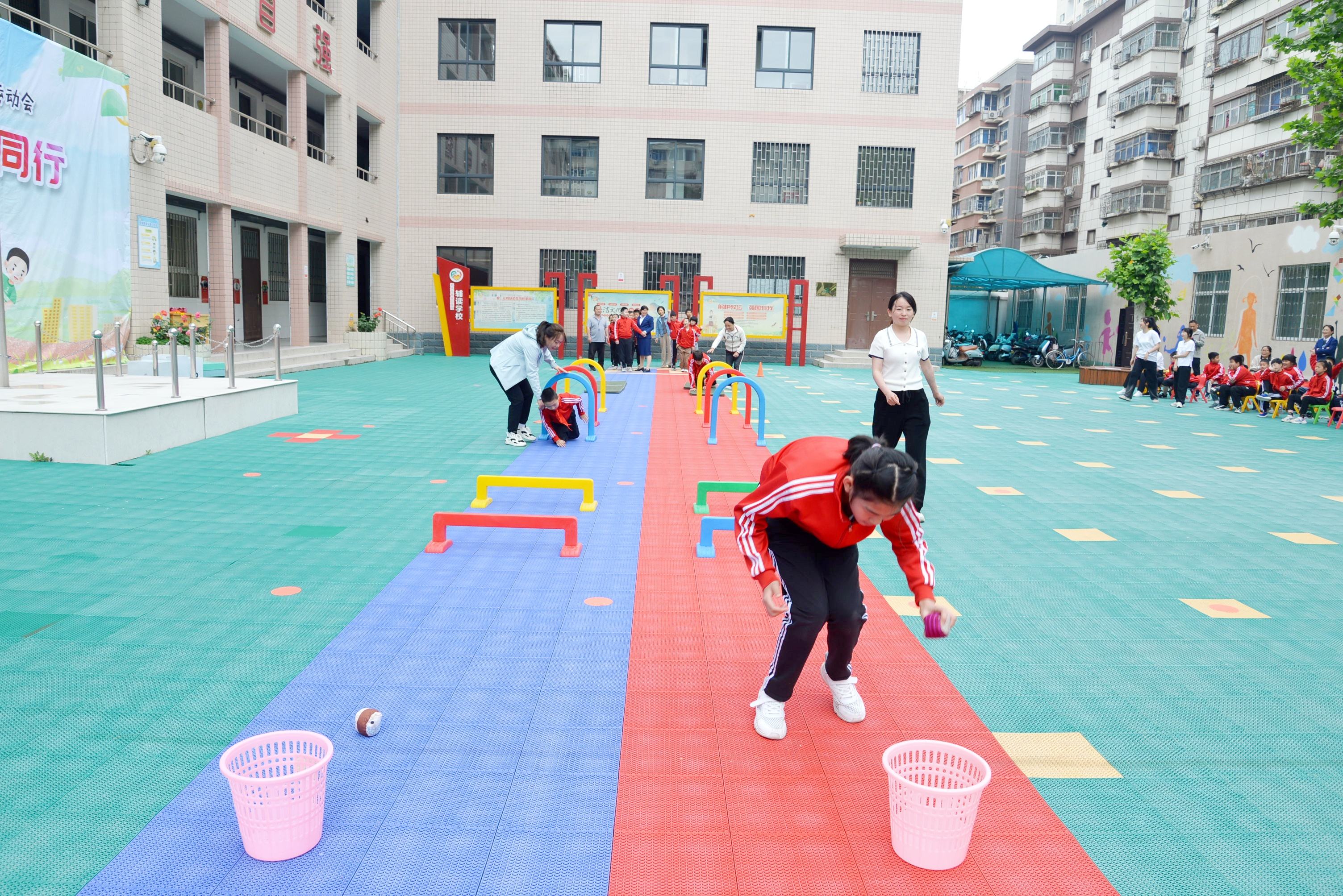 依据学生的年龄及身心特点,此次趣味运动会设置了“我是小哪吒”“勇士冲刺”“乔丹来了”3个项目。你瞧!“我是小哪咤”项目中,低年级的运动员在老师同学们的加油鼓励声中,快速踩动踏板,好像小哪吒一样脚蹬风火轮;在“勇士冲刺”项目中,中年级的“小勇士”们越过重重障碍,勇往直前,抵达终点;在“乔丹来了”项目中,高年级的运动员展示运球技巧,你追我敢,毫不落后。每一个项目,大家都积极参与,充分展现了勇敢尝试,争取胜利、团结协作的精神。