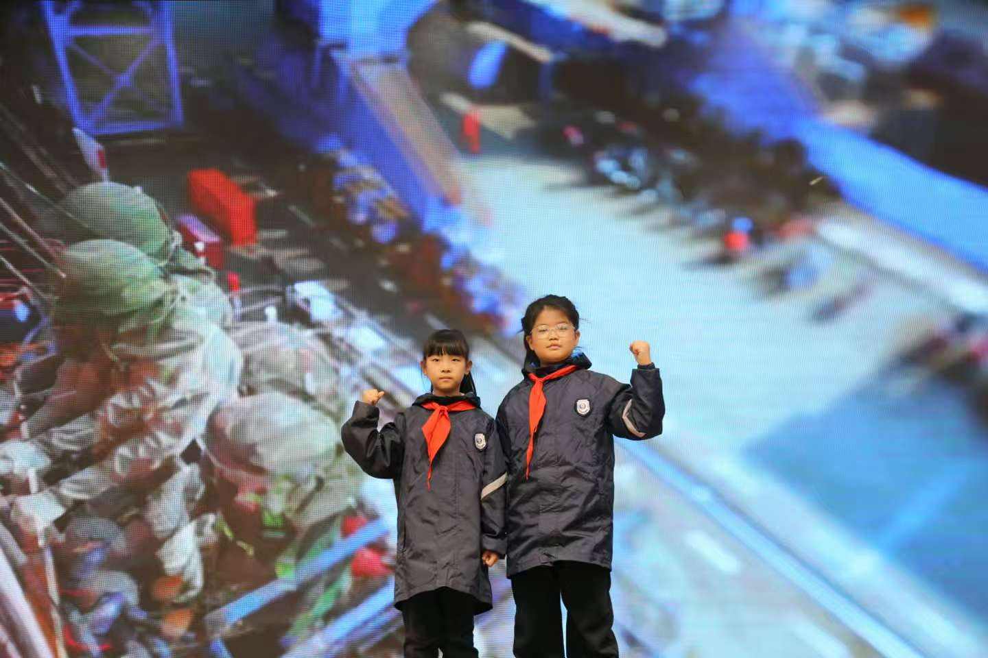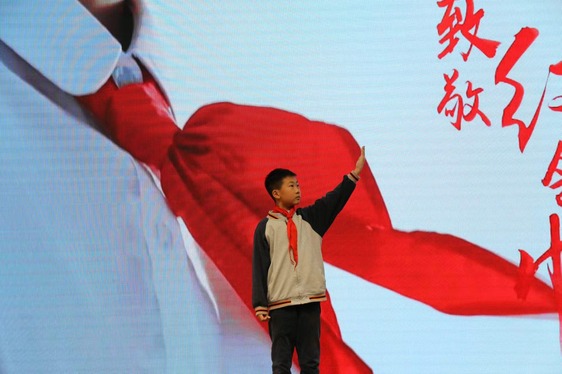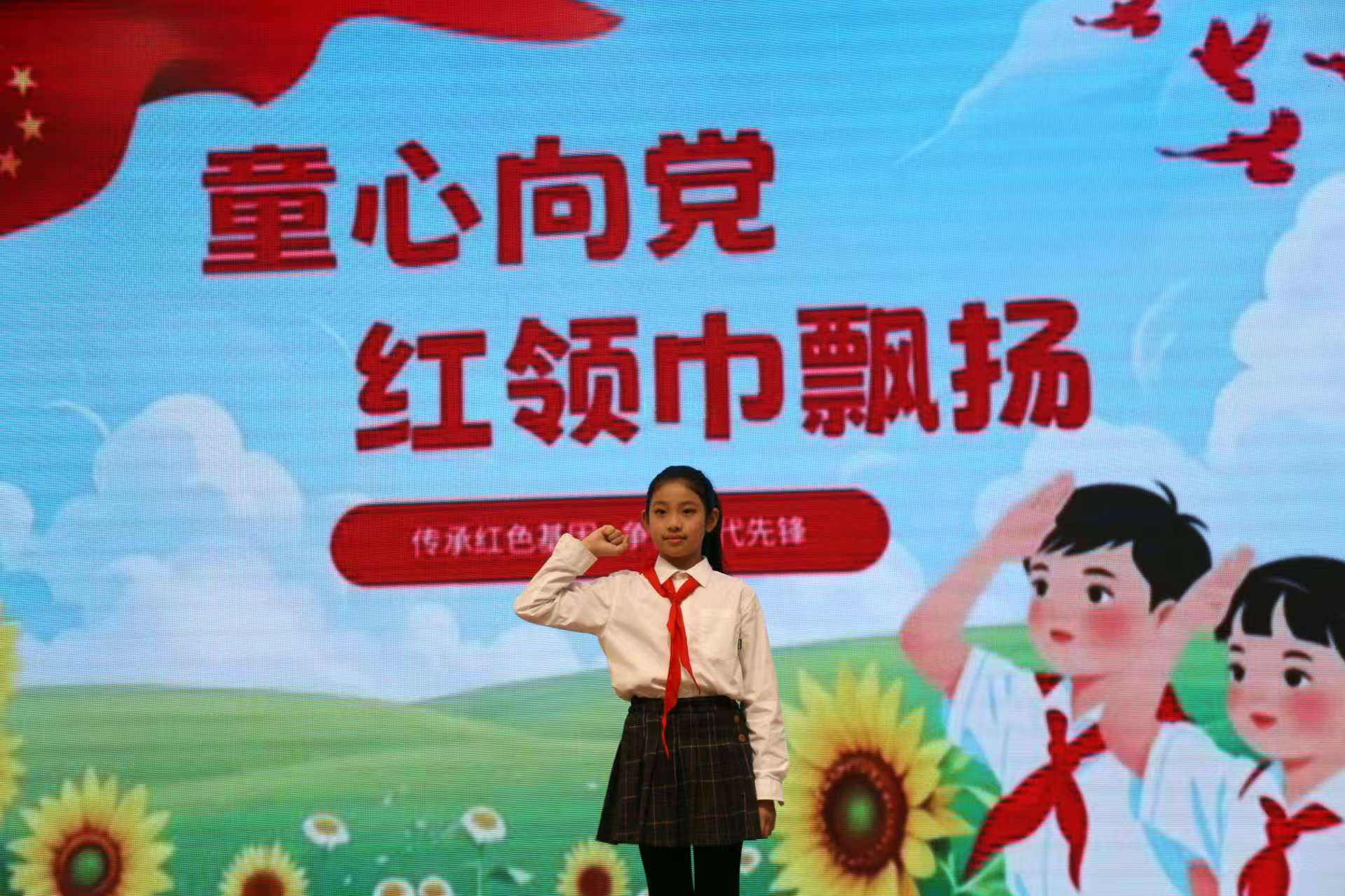 活动现场, 少先队员们精神抖擞, 以饱满的热情踏上舞台。 《红 领巾的梦》句句真挚传递新时代少年对理想的坚定追求,让红色信念 在朗朗声中浸润心灵;原创诗歌《以少年之名 赴时代之约》, 用“高 铁穿梭山河 ” “ 航天梦照进现实 ” 等鲜活意象, 歌颂新时代的蓬勃发 展与祖国的繁荣强盛; 《红领巾在我心中飘扬》 以情景诵读式, 化 身 “ 未来红领巾 ” , 讲述长大后投身科技攻关、 守护绿水青山的理想, 让“强国复兴”的种子在心中扎根。