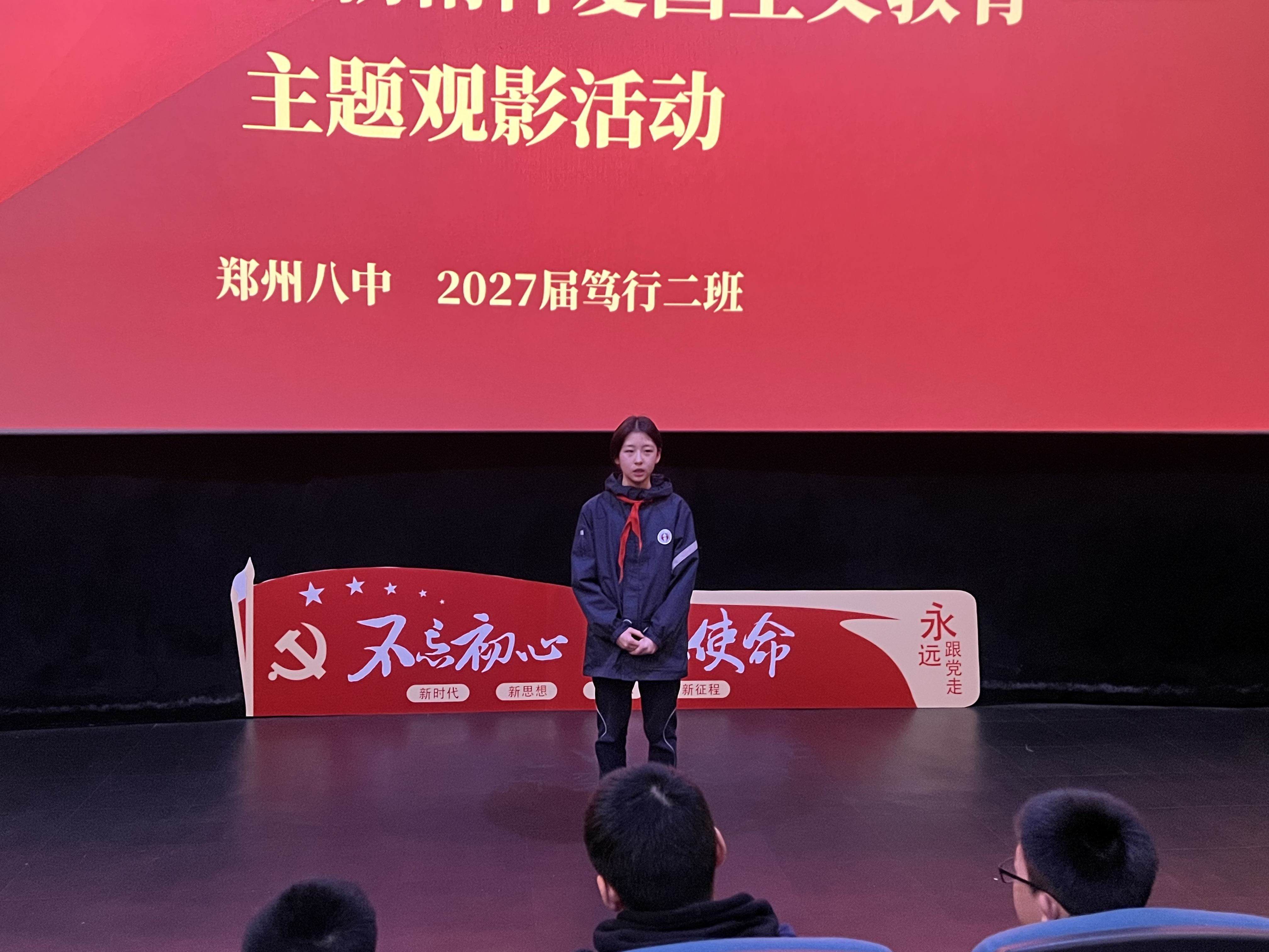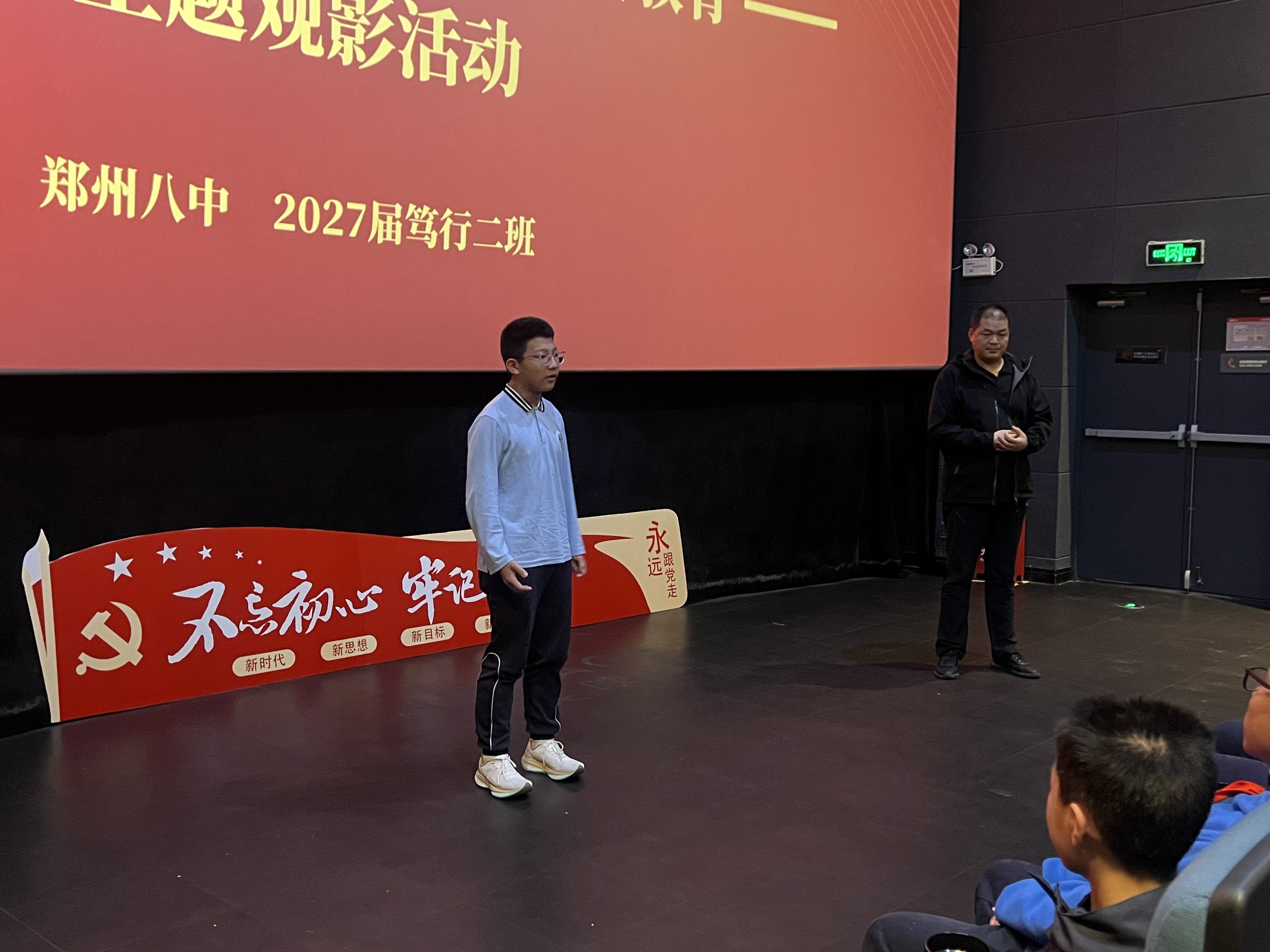 为纪念中国人民志愿军抗美援朝出国作战75周年,深化爱国主义教育,持续推进国防教育,引导学生传承英雄精神、勇担时代使命,10月25日下午,郑州八中2027届笃行二班以“铭记英雄志 担当正当时”为主题,组织开展《志愿军3:浴血和平》观影主题实践活动,郑州八中政教处黄晓杰主任、部分家长与同学们共同参与。