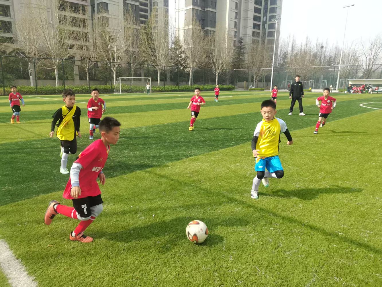 赛场上,少年们精神抖擞、意气风发,褪去稚气,尽显昂扬斗志。奔跑的身影如风掠过草坪,精准的传球凝聚团队默契,果断的抢断彰显无畏勇气,有力的射门点燃全场激情,每一个动作都干脆利落、一气呵成。阳光下,绿茵场成为少年们的逐梦舞台,身影穿梭间,呐喊声、欢呼声、加油声交织成最动人的青春乐章。这里既有针尖对麦芒的激烈拼抢,每一次攻防都扣人心弦;也有并肩作战的温暖瞬间,队友间的鼓励、摔倒后的搀扶,让拼搏多了一份温情。少年们以娴熟的球技、顽强的斗志和永不言弃的体育精神,生动诠释了管城少年阳光向上、奋勇争先、团结协作的良好精神风貌。