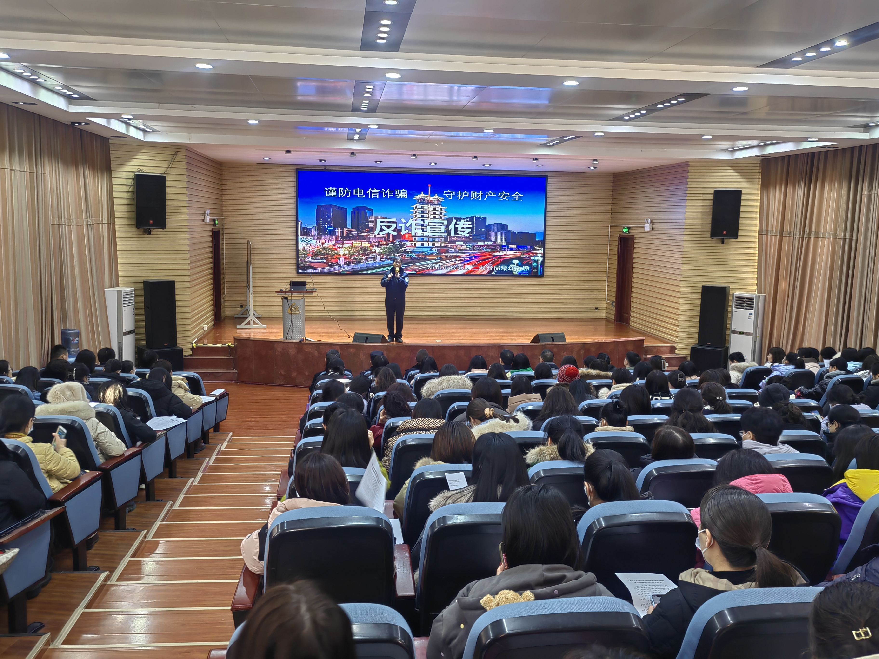 随后,郑州公安局二七分局反诈大队三级警长、郑州市公安局特聘心理教官吴聪聪进行防诈骗安全教育专题讲座。吴警官结合实际的诈骗案例和法律知识,分析了电信诈骗的各种手段、危害性等,引导教师分辨诈骗的真伪。她以缅北诈骗团伙为主题,利用视频资料生动讲解,提醒老师们切忌盲目自信、侥幸大意,如遇到电信诈骗案件,应沉着应对,及时向公安机关报警。最后,吴警官强调“六个一律,八个凡是”的重要观点。此次防电信诈骗安全教育活动取得的良好成效。