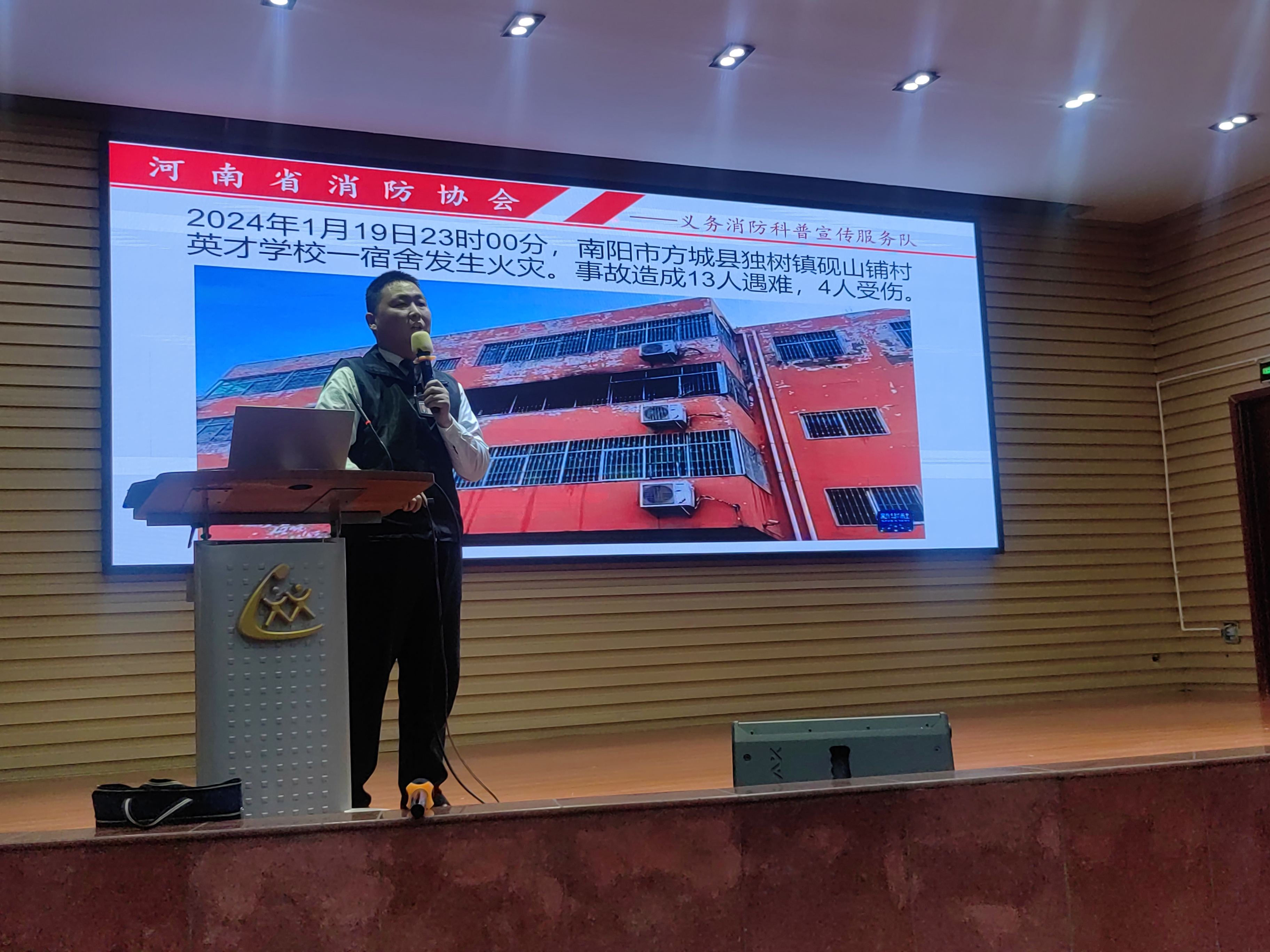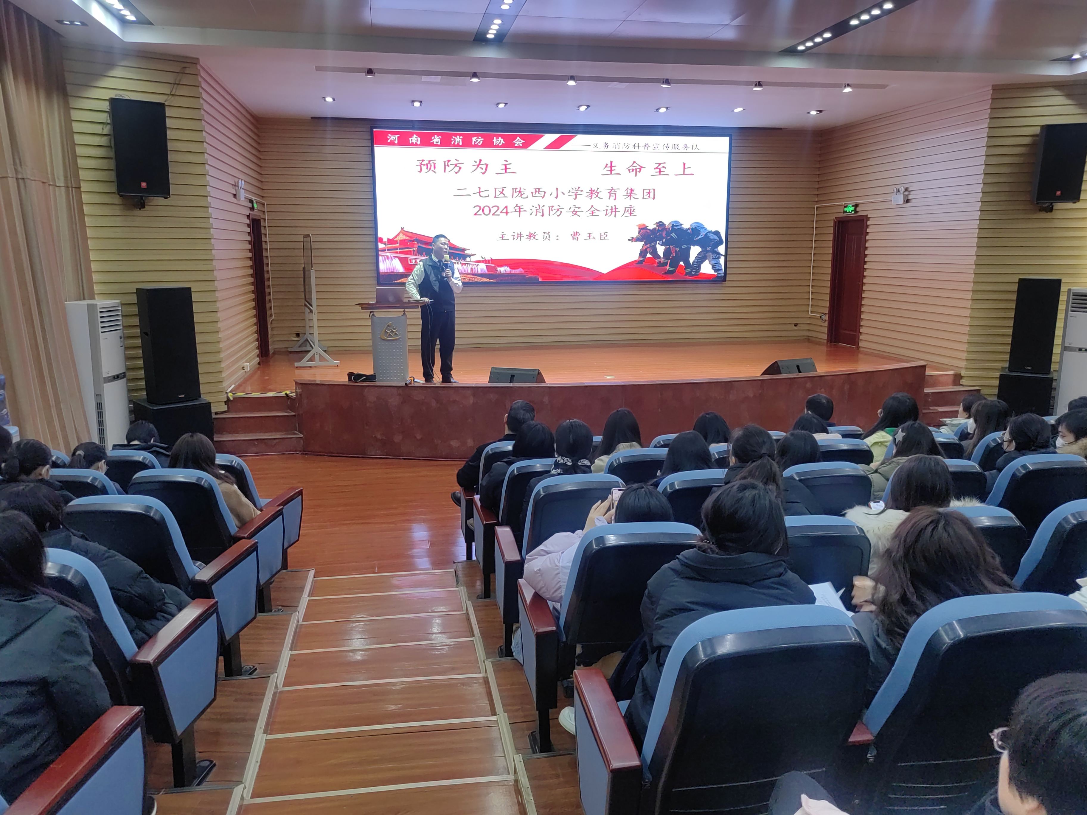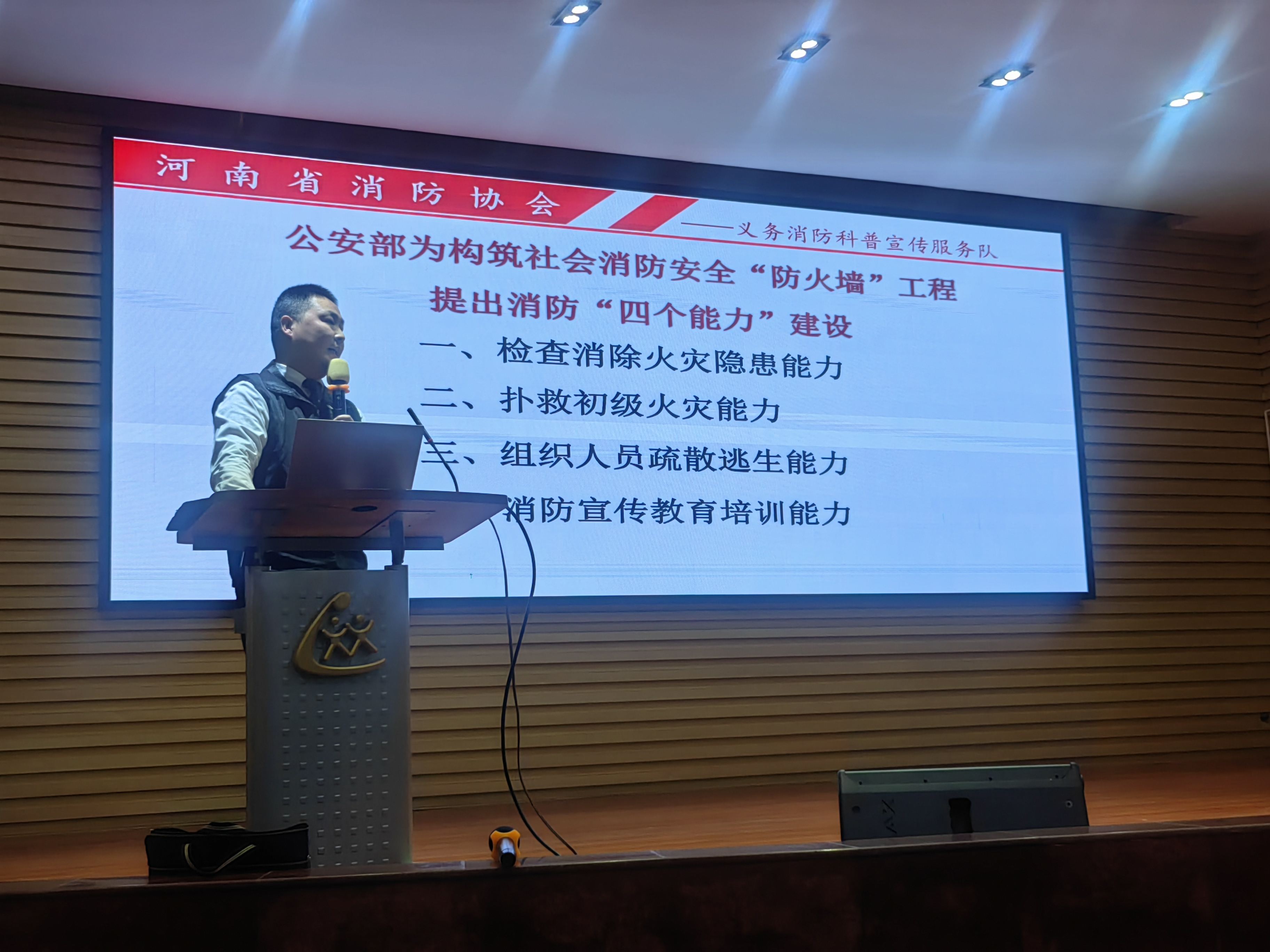 消防安全是关乎人民生命财产安全的重要一环,河南省消防协会义务消防科普宣传服务曹玉臣宣讲员又为老师们带来了一场消防安全知识培训。曹宣讲员以一张张图片、一个个生动鲜明的案例、视频为切入点,从防火、用电安全、火灾自救等方面进行阐述,重点分析了河南方程英才学校以及江西新余市火灾的情况,并针对性给予应急逃生的指导。曹宣讲员用严谨的专业知识分别从火灾的危害性、火灾的种类、灭火器的使用方法、灭火与逃生自救等方面向参会的教职工进行了生动、形象的讲解,使教师更加深刻地认识到火灾的危害性以及预防火灾的重要性。