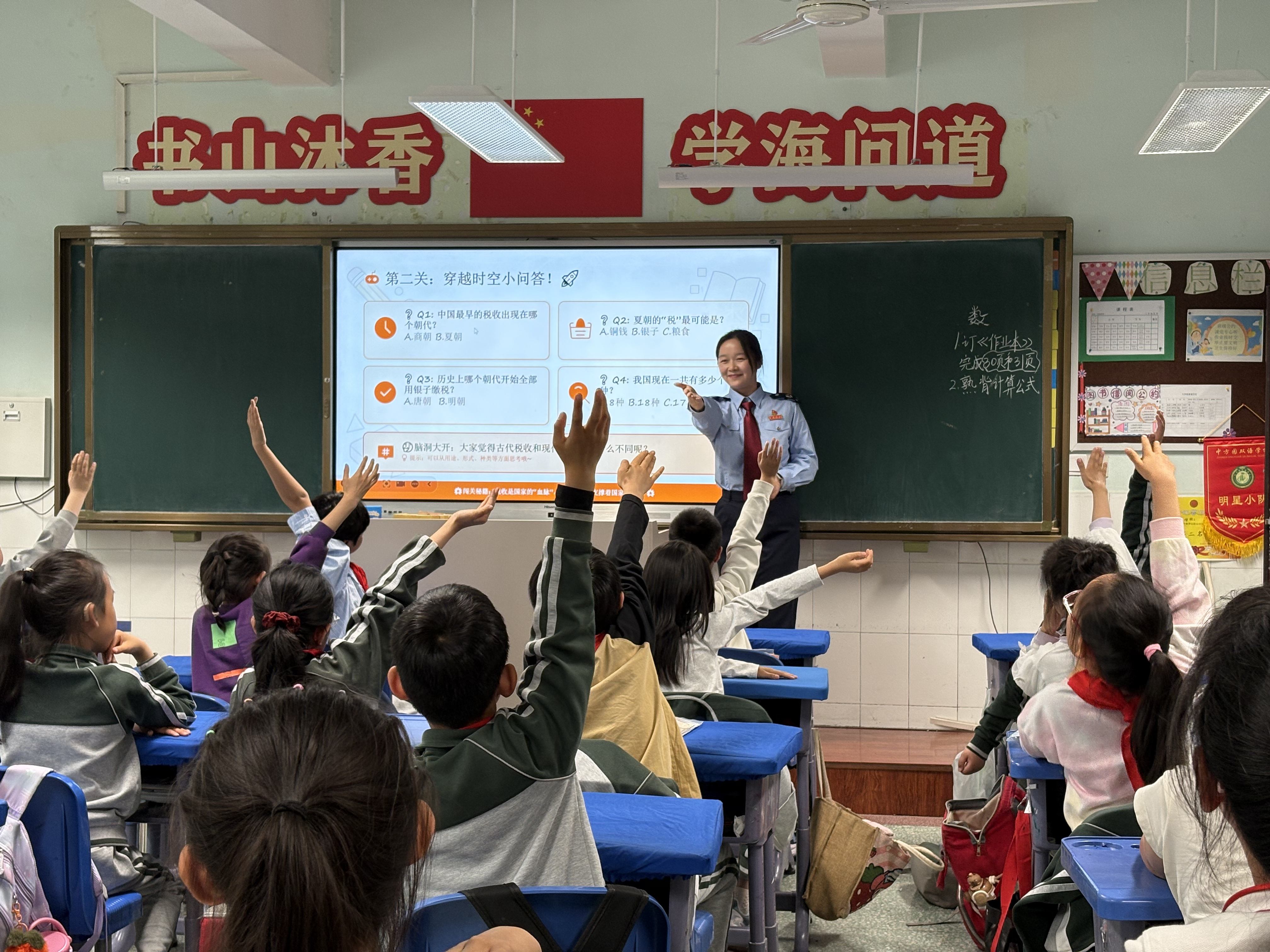 在郑州市管城区回民第二小学和郑州市中方园双语学校,税务干部将专业税收知识转化为通俗易懂的校园语言和生动鲜活的生活案例,围绕“税收取之于民、用之于民”等内容,用同学们熟悉的校园建设、道路绿化、公共设施等场景,直观讲解税收的来源与作用,让孩子们深刻理解税收与生活的紧密联系。在趣味互动环节,知识抢答、情景模拟等活动点燃同学们参与热情,在轻松氛围中加深对税收知识的理解。