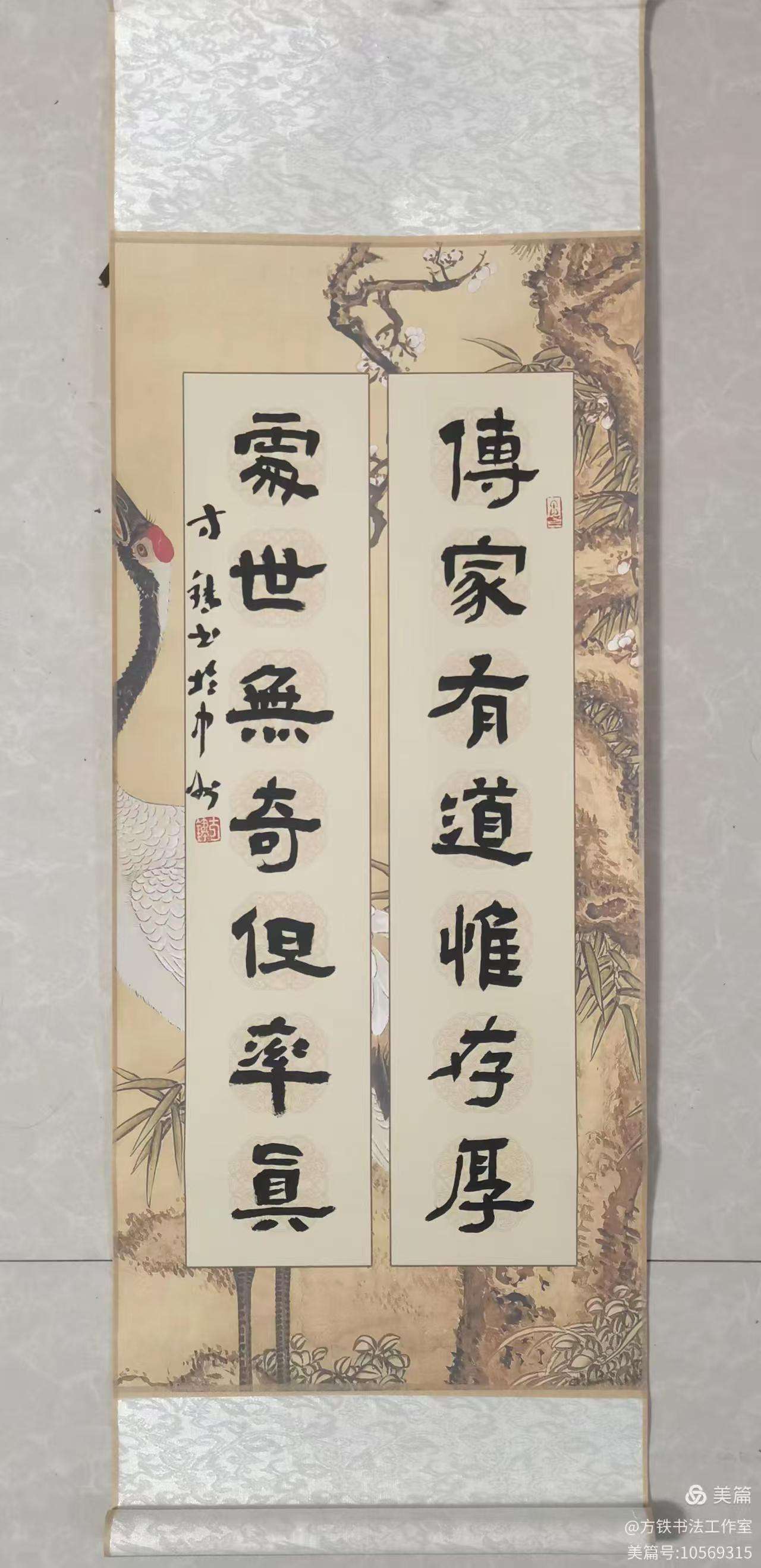 徐秋月:方铁老师的深更翰墨数十年,笔墨厚重沉稳,结体端方大气,每一笔都饱含方老师对书法美学的独到体悟。再品展品中的联语,意境悠远,把书法的线条之美,与文学的辞章之妙,熔铸得浑然天成。也是践行的“艺术为人民”宗旨——让翰墨丹青走出书斋,走进大众。