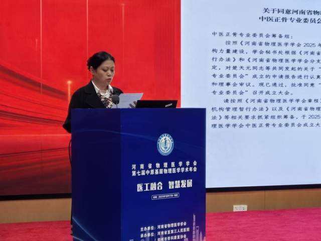首先,省物理医学学会副会长刘明宣读了《关于成立河南省物理医学学会中医正骨专业委员会的批复》(豫物医会文〔2025〕16号):根据学会相关管理办法,经会长办公会审核与理事会审议,同意成立中医正骨专业委员会。