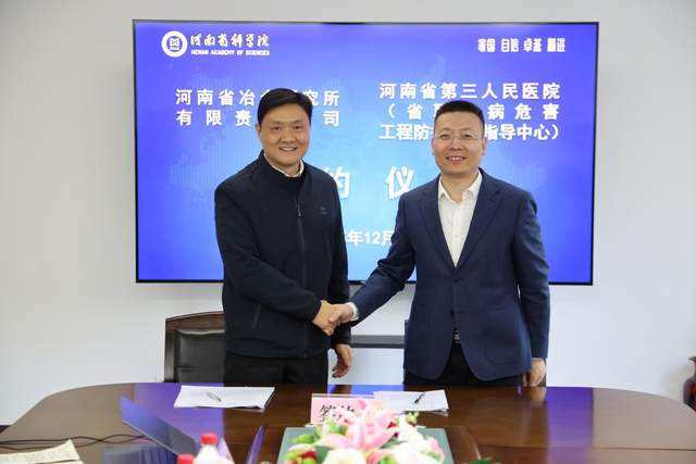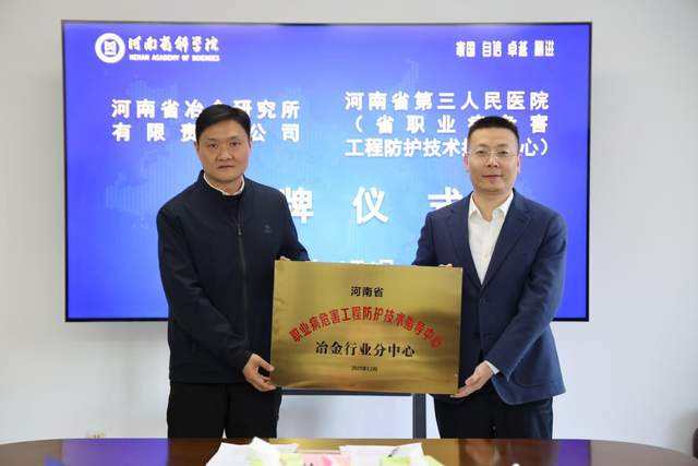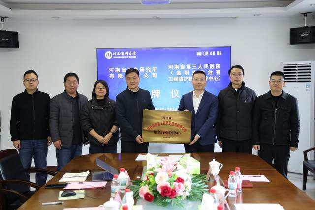12月4日,河南省职业病危害工程防护技术指导中心冶金行业、有色行业分中心在河南省冶金研究所有限责任公司签约共建、正式授牌。河南省第三人民医院(河南省职业病危害工程防护技术指导中心)院长吴迪与河南省冶金研究所有限责任公司董事长高岩出席签约授牌仪式。