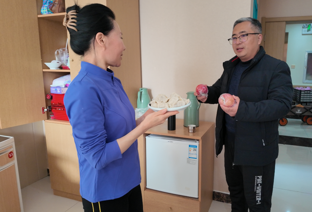 正午时分,在王洪涛副院长的亲自带领下,由护理部同事组成的慰问小组,携带着刚刚出锅、热气腾腾的水饺,以及一个个寓意“平安”的鲜红苹果,深入每一间病房,将这份冬日的特别温暖亲手递到患者及家属手中。