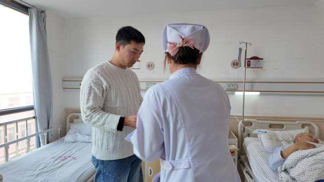 “冬至安康!虽然您暂时需要在医院度过节日,但希望我们准备的这份饺子,能让您感受到家的温暖。”在病房里,王洪涛与患者及家属亲切交谈,细致了解他们的治疗情况与生活需求,叮嘱他们安心休养。护理部的同事们则轻声问候,协助分发餐食。一份热气腾腾的饺子,一句真挚的祝福,瞬间消弭了病房的冷清,拉近了心与心的距离。
