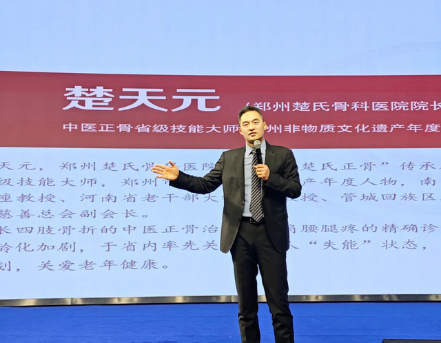 长楚天元,作为“楚氏正骨”非物质文化遗产传承人、河南省卫健委认定的“楚氏正骨”流派传承人、河南省中医正骨省级技能大师,与脊柱与疼痛诊疗专家、副院长周鹏共同应邀登台作专题授课,展现了医院在中医正骨与脊柱微无创治疗领域的专业影响力。